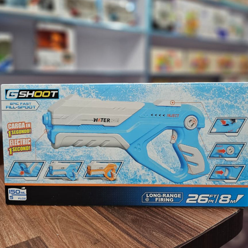 Key Features: ⚡ 1-Second Electric Fast Fill: No more wasted time at the faucet! The innovative spout automatically reloads the 150ml tank in just one second. 🎯 Long-Range Power: Soak your targets from up to 26 feet (8 meters) away, giving you a serious advantage in any water fight. 🔫 Automatic Electric Firing: Just press the trigger for a continuous, powerful stream of water. No manual pumping needed! 🛡️ Durable & Kid-Safe: Made from high-quality, non-toxic materials, this water gun is built to withstand epic battles and is safe for everyone. ☀️ The Ultimate Summer Toy: Perfect for pool parties, beach days, backyard games, and family fun. An amazing gift for kids, teens, and adults! How to Use: 1. Ensure the blaster is turned on. 2. Dip the front nozzle into a source of water (pool, bucket, etc.). 3. The gun will automatically fill itself in one second. 4. Aim, fire, and soak your competition! Don't just join the water fight—win it. Gear up for an unforgettable summer and order your G-SHOOT Electric Water Blaster today
