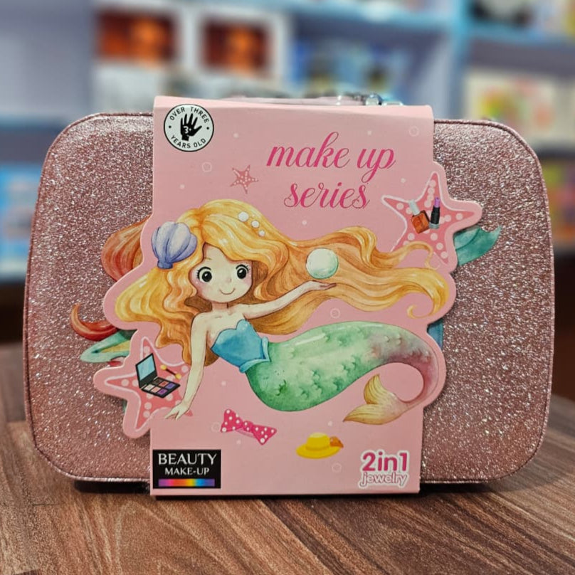 Sparkle and shine with the ultimate Mermaid Makeup Series beauty case! This dazzling pink glitter case opens up to reveal a complete beauty studio packed with everything needed for a magical makeover. It's the perfect all-in-one set for any child who loves mermaids, dress-up, and creative play.